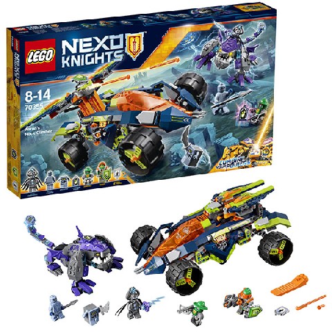 Aaron's Rock Climber LEGO Nexo Knights "Вездеход Аарона" Соберите большой вездеход Аарона, на котором он противостоит большому злобному монстру Лорда Спрутоглава. У этого монстра огромный подвижный хвост большие фиолетовые лапы и необычные крупные уши и зубы. У самого Лорда Спрутоглава большое магическое оружие в виде молнии, а на голове находится кристалл. Ему помогают Каменный солдат и Брикстер. Чтобы сразиться с ними Аарон использует большой вездеход с большим функционалом: он может не только быстро ездить, но и атаковать из большого арбалета с помощью стрел. Кроме того, вездеход разбирается на составные части – внедорожный багги и мини-флаер. Сам Аарон находится в закрытой кабине, что непременно повышает уровень его защиты от врагов. У него тоже есть помощник — это Бот Аарон. Вместе они должны не позволить Лорду Спрутоглаву применить запретные магические силы! Количество деталей: 598 Рекомендуемый возраст: 8 - 14 лет