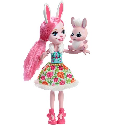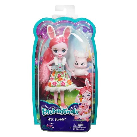 Papusa Enchantimals Bree Bunny Mattel Enchantimals Кукла "Бри Кроля" Перед вами Бри Кроля и ее милый пушистый кролик Твист. Они так похожи! У Бри есть кроличьи ушки, хвостик и носик. А еще у нее нежно-розовая кожа, голубые глазки и розовые длинные волосы, которые можно расчёсывать. Наряд Бри просто очарователен: белый меховой воротник, нежно-голубой топ с рисунком цветочков и сердечек, пышная белая юбка с принтом из цветов и морковок и отделкой из меха. А еще на ножках нашей героини красуются туфельки в виде кроликов, дополняющие образ. Высота куклы: 15 см Рекомендуемый возраст: от 4-х лет