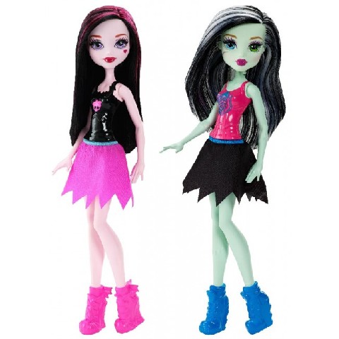 Papusa MH seria "Ghoul Spirit" ast Встречайте лучшую группу поддержки в школе Монстер Хай. Теперь твои любимые монстро-подружки стали упырлидерками. Кто как не Френки Штейн и Дракулаура знают как лучше поддержать командный дух школы. Для этого они подобрали соответствующие наряды. Френки Штейн одета в розовую майку с логотипом школы, черную юбку и страшно модные сникерсы на высокой платформе синего цвета. Дракулаура обзавелась черной майкой с розовым черепком, розовую юбку и розовые сникерсы на высокой платформе. Возраст: от 6 лет