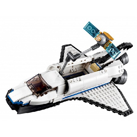 Space Shuttle Explorer LEGO Creator "Исследовательский космический шаттл" Долети до Луны на потрясающем бело-чёрно-сером Исследовательском космическом шаттле с кабиной для минифигурок и большими двигателями. С помощью реактивного ранца ты можешь совершать отважные прогулки в открытом космосе. Открой грузовой отсек, сложи крылья шаттла и с помощью роботизированной руки выведи его на орбиту. Когда ты, наконец, приземлишься на Луне, перестрой шаттл в Космическую станцию, где ты будешь ставить эксперименты по выращиванию картофеля, или в крутой Космический вездеход, чтобы взбираться по склонам на поверхности Луны. Количество деталей: 285 Рекомендуемый возраст- 7 - 12 лет