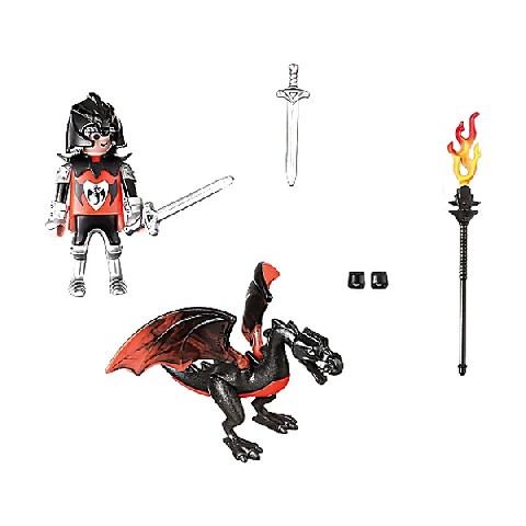 Knight with Dragon Playmobil Игровой набор "Рыцарь с драконом" Комплект включает в себя 13 деталей, из которых впоследствии получатся две основные фигурки - рыцарь и дракон, а также аксессуары, идеально вписывающиеся в набор. С фигурками можно придумать множество игровых сюжетов, например - спасение принцессы от дракона, или спасение дракона от принцессы, которая на самом деле не принцесса вовсе, а злая ведьма. Поэтому с набором идеально сочетаются такие игрушки, как домики, замки, куклы и волшебные существа, наподобие единорогов. Комплект: фигурка рыцаря, фигурка дракона, аксессуары. Высота фигурки рыцаря: 7.5 см Возраст: от 4 до 10 лет