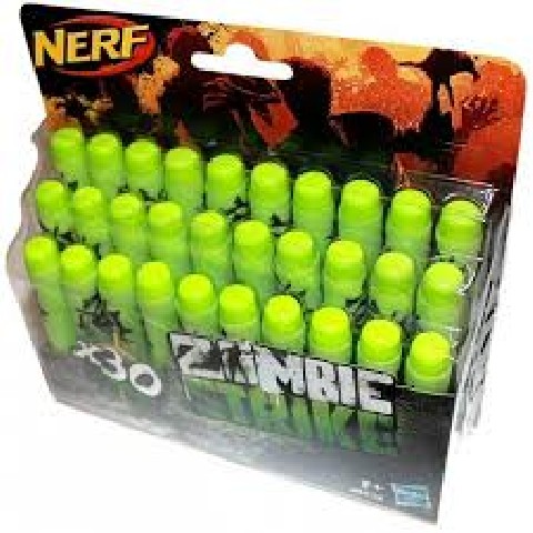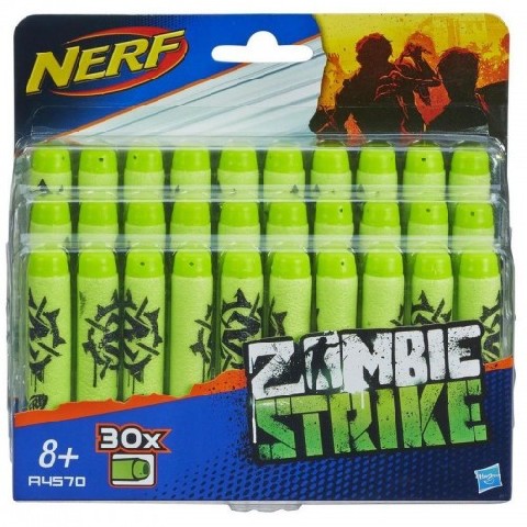 NER ZOMBIE STRIKE DECO DARTS Hasbro Комплект из 30 стрел для бластеров NERF "Zombie Strike" Зомби окружают со всех сторон, рука тянется в подсумок, но внутри нет патронов... Чтобы такого не случилось во время игры вашего малыша с друзьями, вы можете подарить маленькому спасителю человечества дополнительный комплект из 30 стрел Nerf Zombie Strike. Декорированные мягкие стрелы Nerf Zombie Strike подойдут ко всем бластерам серии Нерф Зомби Страйк. Комплект: 30 стрел Рекомендуемый возраст: 8 лет +