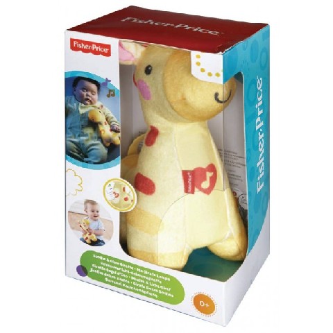 Mattel FP Girafa muzicala/pentru somn Жираф от Fisher Price можно использовать в качестве ночника или приятной мягкой игрушки. Милый и уютный жираф Fisher Price реагирует на прикосновения, он способен в течение 15 минут проигрывать 8 детских колыбельных. Громкость звучания можно регулировать, звуковые и световые элементы приводятся в действие легким нажатием на игрушку. Требуются 2 батарейки AA Возраст:0+ мес.