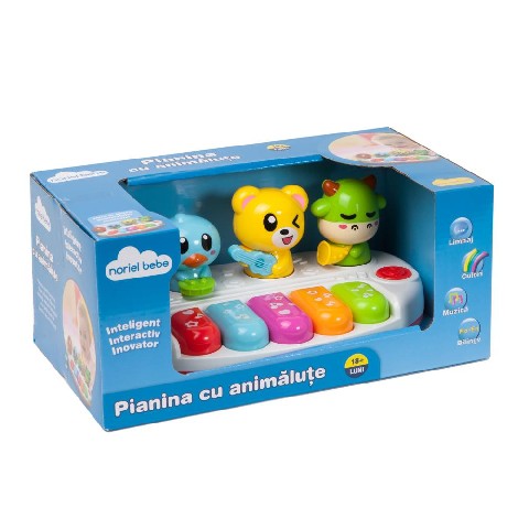 Noriel Bebe-Pian cu Microfon Noriel "Пианино с зверюшкими" (рум/анг) Шаг за шагом, дети узнают элементы языка, формы, цвета, цифры, алфавит и многие другие знания о мире который их окружает. У вашего малыша будут часы веселья и радости с игрушками от Noriel. Kлавиатура Пианины создает песню, используя 4 закрылков веселое домашнее животное: утка, медведь, корова. Игрушка работает с тремя батареями 1.5V AA (не включены). Рекомендуемый возраст: от 1,5 месяцев