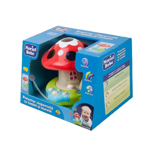 Proiector cupercuta cu lumini si sunete Noriel Bebe "Грибочек с световыми и звуковыми эффектами" Проектор Noriel Bebe Грибочек - это музыкальная игрушка, выполненная в виде домика-грибочка с волшебными окошками и дверцей. Рядом ещё один маленький грибочек. Шляпки обоих грибов вращаются на 360 градусов. Травка колышется вверх-вниз. Звучат забавные мелодии и звуки природы. Громкость можно регулировать, а так же можно включить только свет, либо свет и музыку. В основании игрушки есть переключатель, который переводит режим работы игрушки в один из режимов: авто, 5 минут, 15 минут. Питание: 3хAA / 1.5V Рекомендованный возраст: 18 месяцев +