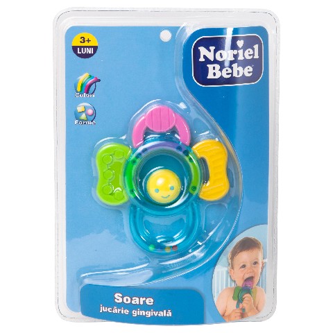 Jucarie Gingivala Soare Noriel Bebe "Игрушкa для десен Солнышко" Лучики солнышка можно грызть, а в прозрачном окошке игрушки гремят разноцветные шарики. Благодаря легкому весу и продуманной форме погремушку удобно держать в ручке. Массажер для десен "Солнышко" снимет дискомфорт при прорезывании зубок, а гремящие шарики отвлекут внимание ребенка. Кроме того, игрушка развивает хватательные движения, учит держать предмет в ручке, развивает внимание. Подходит для детей: от трех месяцев.