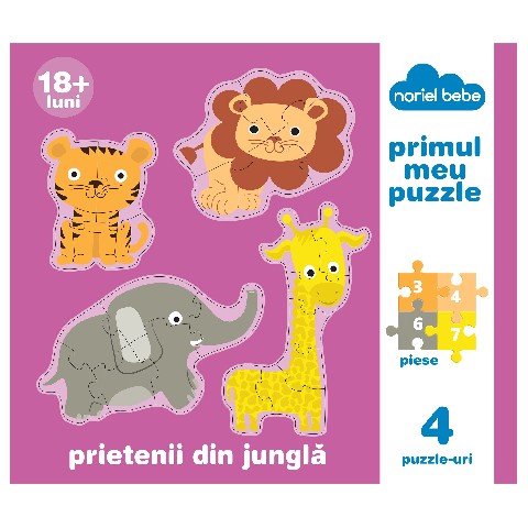 Prietenii mei din jungla Noriel пазл "Друзья из джунглей" Быстрее пакуйте чемоданы, потому что вы едете в путешествие! В вашем приключении через джунгли вас будут сопровождать: тигр, лев, жираф и слон. Коллекция "Мой первый пазл" позволяет маленьким деткам, открывать для себя окружающий мир, познавать его красоту и многообразие. Игрушка рекомендуется для детей старше 18 месяцев.