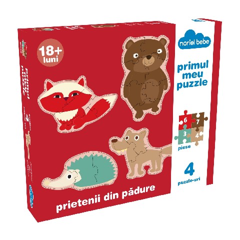 Prietenii mei din padure Noriel-Bebe Пазл "Мои друзья из леса" Медведь, еж, лиса и волк являются друзьями леса и приглашают тебя отведать дикой клубники и ежевики! Коллекция "Мой первый пазл" позволяет малышам открывать для себя красивые вещи окружающие его. С качественными деталями и красочными иллюстрациями пазлов из этой коллекции у ребенка развивается любознательность, интеллект и чувствительность, через незабываемый опыт, который обеспечивает первые шаги для полного и гармоничного развития. Набор содержит: 4 пазлы Рекомендуемый возраст: 18 месяцев +
