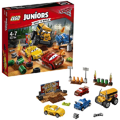 Thunder Hollow Crazy 8 Race LEGO Juniors Гонка "Сумасшедшая восьмерка" Спаси Молнию МакКуина и Крус Рамирес от мисс Фриттер, которая устроила ожесточённую погоню во время 8-й гонки Громовой лощины. Теперь это настоящая гонка на выживание! Берегись большого жёлтого школьного автобуса, уклоняйся от горящих шин и заграждений и сохраняй спокойствие в главной гонке Молнии! Количество деталей: 191 Рекомендуемый возраст: 4 - 7 лет
