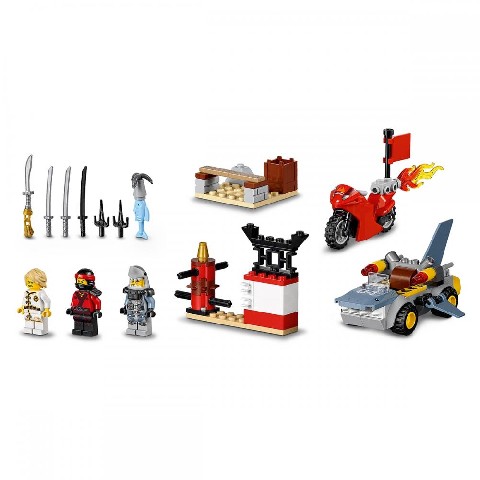 Shark Attack LEGO Juniors "Нападение акулы" Вместе с конструктором Нападение акулы пройди краткий курс обучения на базе, чтобы дать отпор Большой белой акуле! Вспомни уроки Ллойда и используй оружие, как настоящий воин Lego Ninjago, но берегись ракет и гарпуна, которыми стреляет акулий автомобиль! Бросай в бой Кая на его огненном мотоцикле и спаси город Ninjago от армии акул Гармадона. Количество деталей: 108 Возраст: 4 - 7 лет