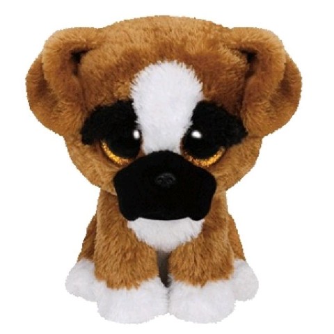BB BRUTUS - boxer dog 15 cm TY Beanie Boo's "Щенок породы боксер Brutus", 15 см Щенок боксера Брут выглядит немножко опечаленным, но это — отличительный признак его породы, только добавляющий собачке трогательности. Погладив мягкую плюшевую шерстку Брута, можно ощутить неподдельную нежность. Это чувство подкрепляет взгляд больших глаз с золотыми ободками. Мех игрушки искусственный, не требует специального ухода и легко чистится. Размер игрушки: 15 см Рекомендуемый возраст: 3 года +
