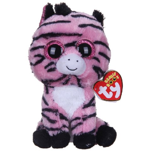BB ZOEY - pink zebra 15 cm TY Мягкая игрушка Beanie Boos "Зебра Zoey", 15 см Зебра Zoey — это мягкая игрушка, которая входит в обширное семейство плюшевых животных Beanie Boos. У игрушки очень большие блестящие глаза, которые украшают игрушку и придают ей очень милый вид. Полосатая шерстка зебры приятна на ощупь. Она имеет интересный розовый оттенок. Зебра изображена сидящей. Игрушка сшита из качественных материалов с применением оригинальной пластиковой фурнитуры. Размер игрушки: 15 см Возраст: от 3 лет