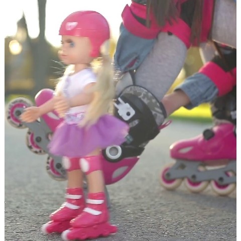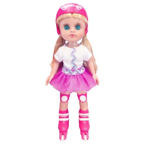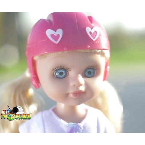 Maia pe role Noriel Кукла "Майя на роликах" Спорт важен и интересен, Майя решила продемонстрировать вашей маленькой девочке, насколько легко можно наслаждается погодой на улице! Нажмите кнопку на груди куклы и смотри как кукла катается на роликах, делает пируэты и слушай, что она тебе говорит. Pаботает с 4 батареями 1.5V AA (не включены) Рекомендации Возраст: 3 года +