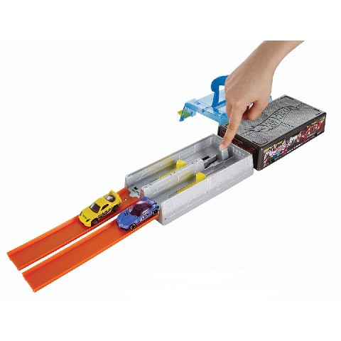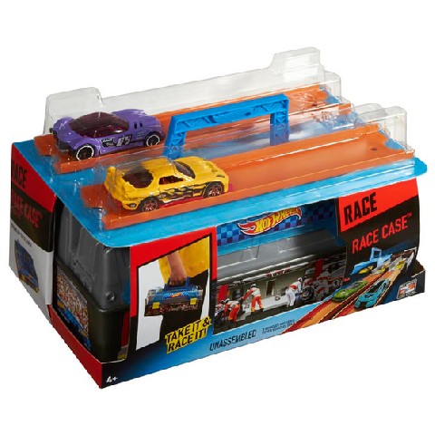 HW Pista Portativa "Race" Mattel Переносной игровой набор Hot Wheels "Race Case" 2 машинки Увлекательный набор Wheels Race Case включает элементы трека и две ярких машинки - желтую и фиолетовую. Можно представить, что кейс — это гараж, и хранить в нем автомобили. Из чемоданчика также можно оборудовать пусковую зону для параллельных гонок. Благодаря специальному устройству каждая машинка поедет по треку сама. Двумя стильными автомобилями можно играть и отдельно от трека. Все составляющие комплекта сделаны из качественных гипоаллергенных материалов, безопасных для ребенка. Элементы набора можно сложить во вместительный чемоданчик с ручкой, который удобно переносить с собой. Комплект: 2 машинки, элементы трека. Рекомендуемый возраст: от 4-х лет