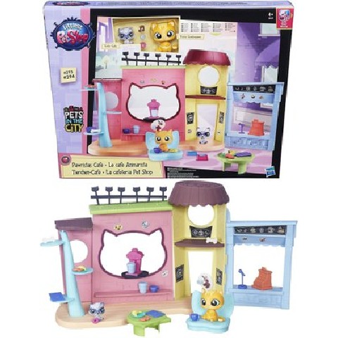 LPS PET CAFE Hasbro Игровой набор LPS "Кафе" Для любимых зверюшек открылось кафе! Сколько сценок из знаменитого можно обыграть имея этот великолепный набор с множеством аксессуаров! Устроить кафе Ваша девочка сможет на свой вкус, а затем угостить посетителей яркими вкусностями и даже приготовить кофе в игрушечной кофемашине. Если объединить несколько наборов, игра станет еще ярче! Чудесным подарком для поклонников Литл Пет Шоп станет новинка от Hasbro Игровой набор "Кафе"! В наборе: эксклюзивная зверюшка и малыш, предметы и аксессуары, бабл и стикеры, чтобы рассказать, о чем думают зверюшки. Рекомендуемый возраст: от 4-х лет