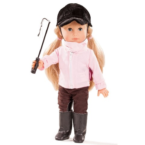 Mia,riding Gotz Кукла "Миа в костюме наездницы" Миа готова к соревнованиям! На куколке красивый и качественно выполненный костюм наездницы, ее прекрасные волосы убраны в два хвостика. Добрая и красивая кукла Мия в костюме наездницы будет рада пополнить коллекцию детский кукол девочки. Хорошо продуманный дизайн, который детально исполнен в чертах лица, длине шикарных волос цвета блонд и качественном и изящном костюмчике наездницы очень понравится хозяйке куколки. Она будет рада стать лучшей подругой своей хозяйки и обязательно подарит много положительных эмоций и воспоминаний. В набор входит: Kукла Миа, одежда куклы (сапожки для верховой езды, леггинсы, жакет, кофта, шлем для верховой езды), игрушечный хлыст. Высота куклы: 27 см Возраст: от 3 лет