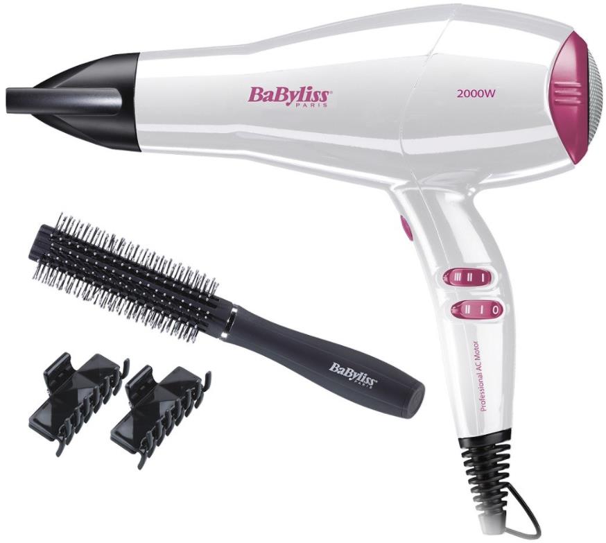 Фен BaByliss D414PE Макс. потребляемая мощность, Вт 2000 Тип управления механический Количество режимов 6 Количество скоростей 2 Кол-во температурных режимов 3 Петля для подвешивания да Длина сетевого шнура, м 1,8 Концентратор да Холодный обдув да Ионизация да Цвет белый/розовый