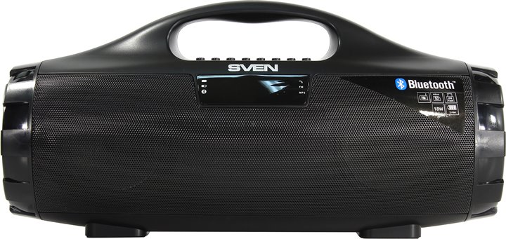 Портативная акустика SVEN PS-460, Black портативная акустика стерео мощность 2x9 Вт питание от батарей радиоприемник линейный вход Bluetooth воспроизведение с USB-накопителя поддержка карт памяти microSD