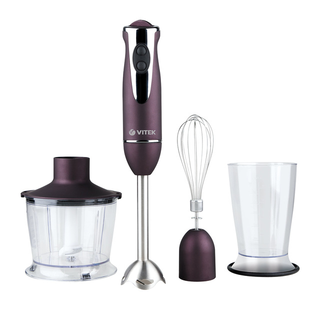 Блендер VITEK VT-1468 (800 Вт) Тип погружной Мощность 800 Вт Кол-во скоростей 2 Емкость стакана 500 мл Мини-измельчитель есть Емкость мини-измельчителя 500 мл Колка льда нет Материал ножки блендера металл Комплектация мини-измельчитель, насадка-блендер, насадка-венчик, редуктор венчика, крышка-редуктор, нож-измельчитель, мерный стакан с крышкой, прорезиненная подставка, инструкция Особенности Электропитание: 220-240 В ~ 50/60 Гц Прорезиненная кнопка управления Габариты, вес, цвет Габариты в упаковке 24х23,5х13,5 см Цвет фиолетовый Страна производитель: КНР