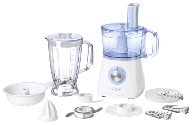 Кухонный комбайн SINBO SHB-3070 Тип комбайн Мощность 700 Вт Емкость чаши 2 л Блендер есть, объем 1.8 л Управление количество скоростей: 2, импульсный режим Соковыжималка для цитрусовых Мясорубка нет Мельничка нет Насадки универсальный нож, диск для картофеля-фри, эмульсионная насадка, терка общее число насадок: 7 Исполнение чаша: пластик, блендер: пластик, корпус: пластик Место для хранения насадок есть Прорезиненные ножки есть