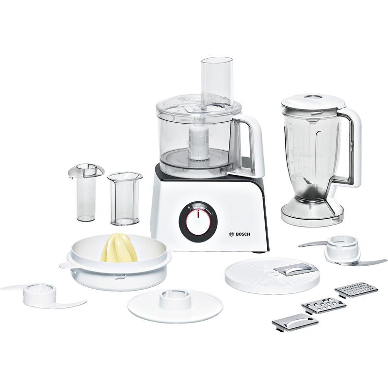 Кухонный комбайн BOSCH MCM4100+MCZ4RS1 Тип кухонный комбайн Мощность 800 Вт Количество скоростей 2 Количество насадок 6 Основные насадки блендер, соковыжималка для цитрусовых Дополнительные насадки пластиковый нож для обработки теста, универсальный нож с диском для взбивания, ножи для шинковки (тонкими и толстыми ломтями), терки (для грубого и мелкого натирания) Объем блендера 1,25 л Объем чаши 2,3 л Материал чаши пластик Материал корпуса пластик Функции и особенности Более 35 различных функций Высокий уровень безопасности благодаря фиксации крышек чаши и блендера во время работы комбайна Длина кабеля: 1,2 м Интегрированное отделение для хранения аксессуаров Импульсный режим Рабочая вместимость чаши (мука/тесто): 0,5 кг/1,2 кг Ножи и терки выполнены из нержавеющей стали Пластиковый держатель для ножей и терок Резиновые присоски на ножках для обеспечения устойчивости прибора во время работы Комплектация комплект насадок Габариты (ВхШхГ) 39х24х21,5 см Цвет белый Страна производитель: Словения
