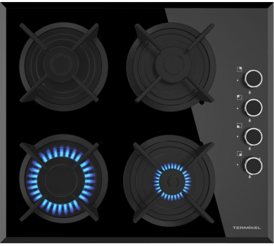 Варочная панель Termikel 17152 BH P6145 B NG Тип Газовая Материал рабочей поверхности Закаленное стекло Количество конфорок 4 Материал решеток Чугун Ширина 60 см Цвет Черный Электроподжиг Да Газ-контроль Да Переключатели Поворотные Габариты (ШхГ) 59x52 см