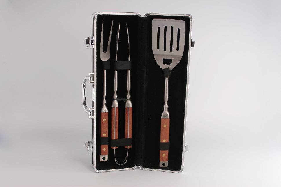 GIPFEL барбекю GP-6187 (набор) Комплектация: — лопатка; — вилка для мяса; — щипцы; Можно мыть в посудомоечной машине. Все аксессуары с достаточно длинной рукояткой для комфортного и безопасного процесса приготовления на открытом огне. Материал нержавеющая сталь Материал кейса алюминий Количество предметов 3 Лопатка 1 Вилка для мяса 1 Щипцы 1 Производитель Gipfel