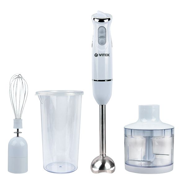 Блендер VITEK VT-3407 (700 Вт) Компактный погружной блендер VT-3407 от компании Vitek мощностью 700 Вт оснащенный 8-ю скоростями работы станет незаменимым помощником в приготовлении вкусных и полезных блюд. Благодаря высокой мощности и острым лезвиям из нержавеющей стали вы буквально в считанные минуты обработаете продукты. Так, насадка-блендер позволит смешать ингредиенты для приготовления теста или соусов, насадка-венчик – взбить или смешать жидкие продукты, а измельчитель – быстро обработать овощи, фрукты, зелень или мясо. В стакане для смешивания с крышкой в комплекте вы легко приготовите вкуснейшие коктейли. Благодаря турбо-режиму обработка продуктов происходит на максимальной скорости. А в зависимости от желаемого результата вы можете плавно регулировать скорость. Важно, что работа с набором максимально легка и приятна – кнопки с покрытием Soft Touch приятны на ощупь Емкость стакана 500 мл Емкость мини-измельчителя 400 мл Тип Погружной Мощность 700 Вт Комплектация: Cтакан c крышкой, Измельчитель, Венчик Особенности Наличие турбо-режима Вес 1.38 кг Материал ножки блендера Металл Цвет Белый Мини-измельчитель Есть