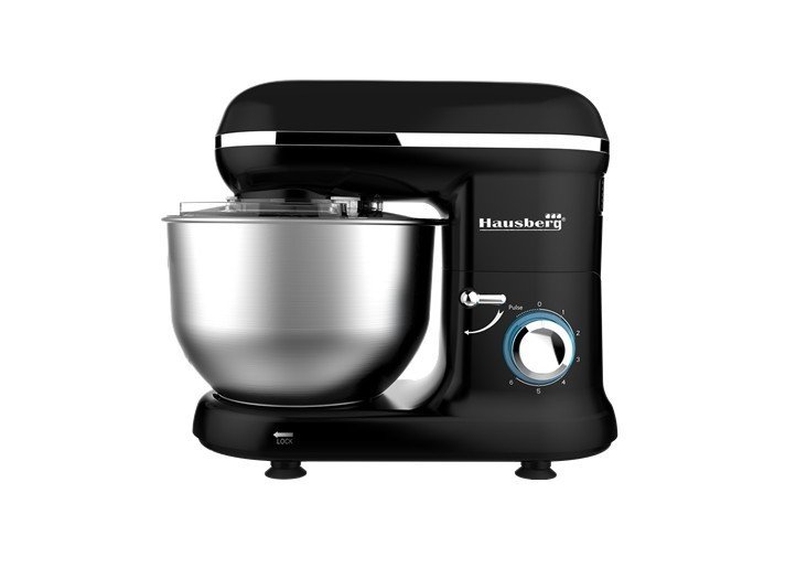 Миксер HAUSBERG HB-7615 Motor cupru pur AC. Putere 1090W. Bol mixare din otel inoxidabil, capacitate bol 4.5l. Comutator rotativ cu 6 trepte de viteza plus ''pulsare''. Buton led albastru ca indicator de pornire. Rotire bol pentru mixare completa. Mecanism de ridicare cu comutator de siguranta. Picioare antiderapante pentru stabilitate in timpul functionarii. Accesorii standard: 1 paleta de framantat, 1 paleta de amestecat, 1 tel. Accesoriile sunt din aluminiu.