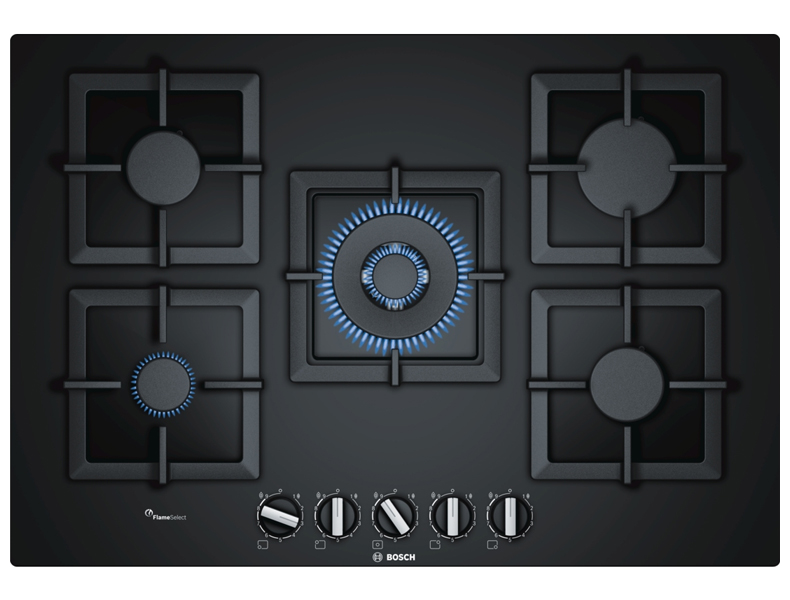 Варочная панель BOSCH PPQ7A6B20 Количество конфорок 5 Конфорок газовых "Двойная корона" 1 Материал поверхности закаленное стекло Решетка чугунная Размещение панели управления спереди Электроподжиг есть Габариты панели (ВхШхГ) 4,5x75,2x52 см Вес 18 кг Цвет черный Фурнитура черный