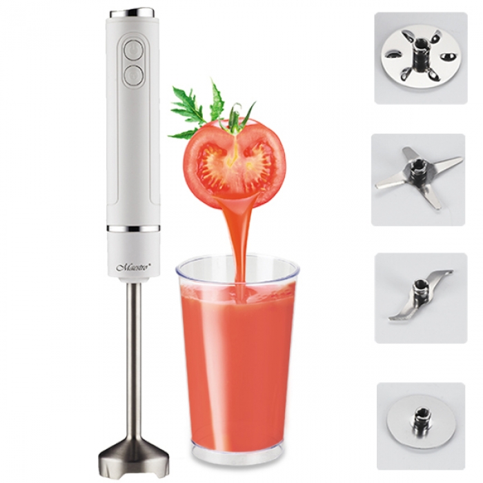 Блендер Maestro MR -568 Мощность: 220-240 В, ~50 Гц, 400 Вт Современный эргономичный дизайн Футляр для хранения аксессуаров 4 сменных ножа их нержавеющей стали Удобство и простота в пользовании и чистке В комплект также входит мерный стакан Количество скоростей: 9 Мощный мотор