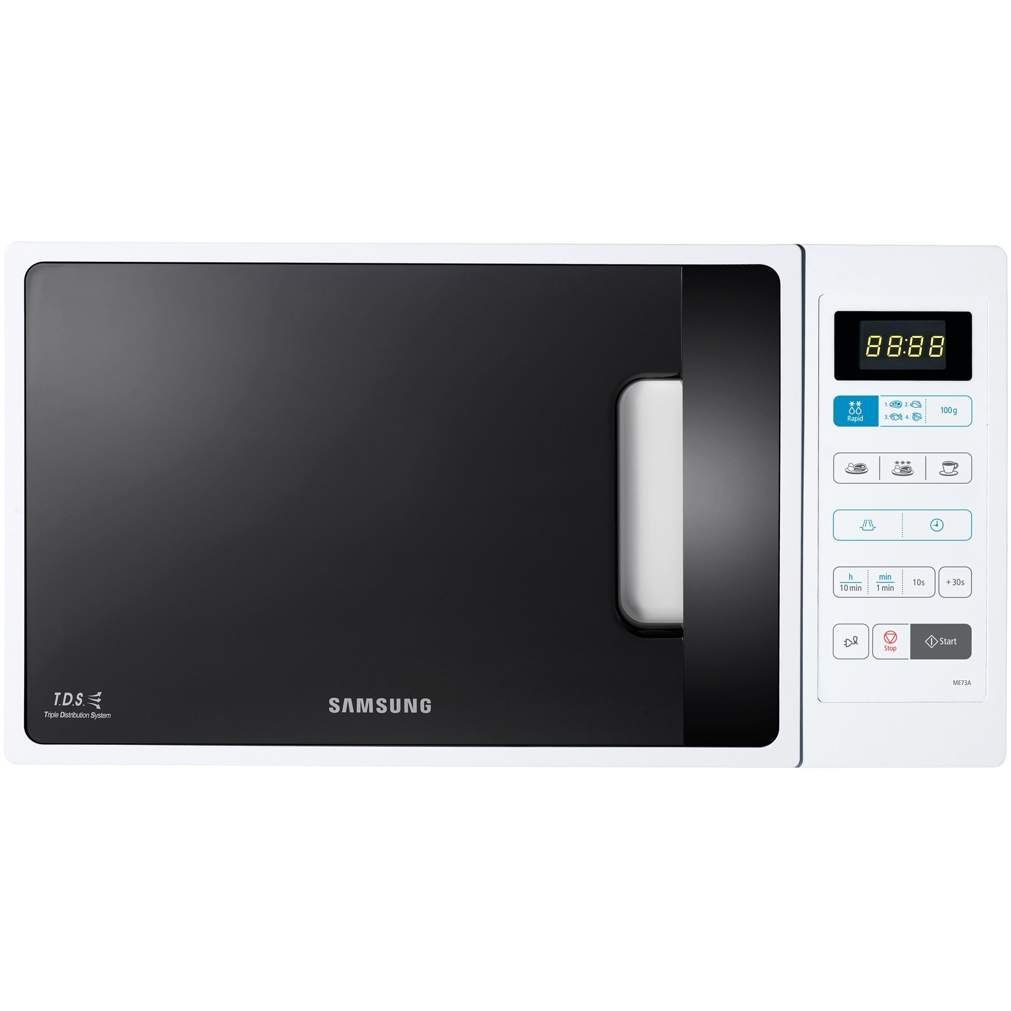 Микроволновая печь Samsung ME73A отдельно стоящая микроволновая печь объем 20 л мощность 800 Вт электронное управление сенсорная панель дисплей система равномерного распределения микроволн защита от детей