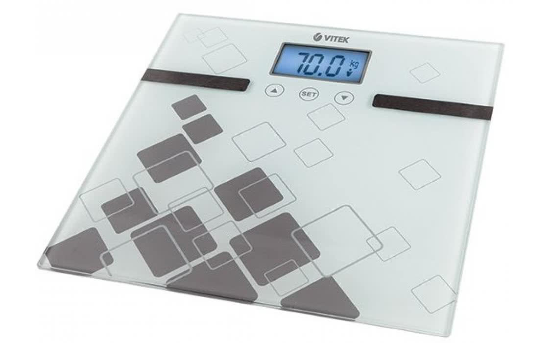Весы напольные VITEK VT 1984 электронные весы с диагностикой стеклянная платформа нагрузка до 150 кг очень точное измерение вычисление излишков жировой ткани определение массовой доли воды запоминание данных пользователя автовключение, автовыключение подсветка символов дисплея