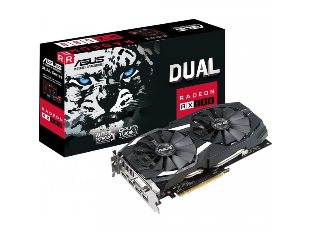 Видеокарта ASUS DUAL-RX580-O8G ASUS AMD Radeon RX 580 DUAL OC – это геймерская карта с эффективным охлаждением, обладающая двумя пыленепроницаемыми вентиляторами с оптимизированной формой крыльчатки. При ее изготовлении применяются высококачественные компоненты, а в комплект ее поставки включена эксклюзивная разгонная утилита GPU Tweak II с модулем онлайн-трансляций XSplit Gamecaster. Высококачественные вентиляторы с оптимизированной геометрией крыльчатки, входящие в состав системы охлаждения данной видеокарты, усиливают воздушный поток и увеличивают статическое давление по сравнению с кулером референсной модели. При этом они производят в три раза меньше шума. В видеокартах ASUS применяются отборные компоненты (технология Super Alloy Power II), которые обладают непревзойденной энергоэффективностью, пониженной рабочей температурой и улучшенными характеристиками. Высокому качеству готового устройства также способствует полностью автоматизированный процесс производства (технология Auto-Extreme). Турбочастота 1380 МГц Объем видеопамяти 8 ГБ Тип памяти GDDR5 Разрядность шины памяти 256 бит Видео разъемы DisplayPort (2 шт), HDMI (2 шт), DVI-D Необходимость дополнительного питания есть Тип охлаждения активное воздушное