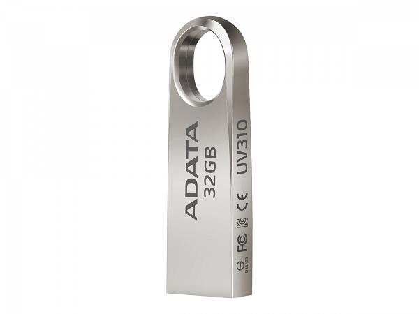 Флешка ADATA UV310, 32GB, USB 3.0, Silver, Metal Case, Slim Capless, f/Keychain (R/W:40/20MB/s) флэш-накопитель 32 Гб интерфейс USB 3.0 скорость чтения/записи: 100/30 Мб/с водонепроницаемый корпус материал корпуса: металл