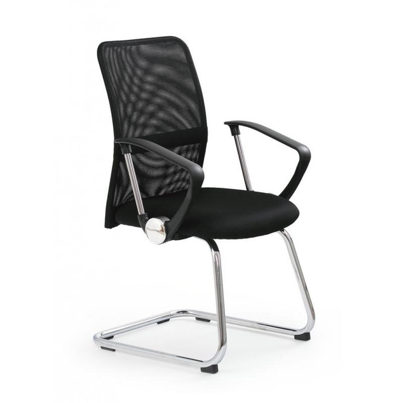 Кресло Halmar VIRE SKID negru Стильное и лаконичное офисное кресло польской компании Halmar. Сидение выполнено из приятной на ощупь мембранной ткани, спинка - из сетки. Сетка обеспечивает не только комфортную посадку, но и отличную вентиляцию. Несмотря на то, что в модели не предусмотрены регулировка высоты, кресло является достаточно комфортным и практичным. Данная модель прекрасно дополнит интерьер конференц залов, залов ожидания или залов отдыха. Тип Операторские кресла Основание Хромированная Подлокотники Да Материал корпуса Металл/пластик Цвет Черный Высота кресла 97 см Ширина кресла 58 см Глубина кресла 60 см
