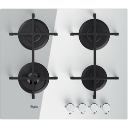 Встраиваемая поверхность газовая Whirlpool GOA6423/WH газовая варочная панель поверхность из закаленного стекла 4 газовые конфорки трехконтурная конфорка переключатели поворотные электроподжиг независимая установка габариты (ШхГ) 59x51 см