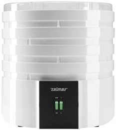 Сушка Zelmer ZFD2050W Мощность, Вт 520 Кол-во поддонов 4 Материал корпуса пластик Регулятор температуры да Сушка фруктов да Сушка овощей да Цвет белый Размеры (ШхВхГ), мм 310x275x310 Вес, кг 2,5