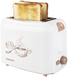 Тостер Scarlett SC-TM11009 Макс. потребляемая мощность, Вт 750 Количество тостов 2 Тип управления механический Регулировка степени поджаривания да Количество режимов поджаривания 7 Кнопка отмены да Материал корпуса пластик Термоизолированный корпус да Поддон для крошек да Цвет белый