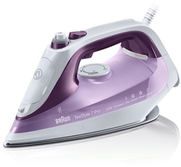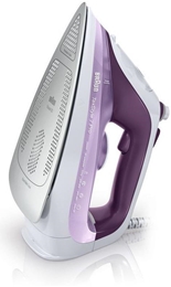 Утюг Braun SI7066VI Макс. потребляемая мощность, Вт 2600 Подошва утюга Eloxal 3D Система защиты от накипи да Автоматическое отключение да Подача пара да Постоянный пар, г/мин 50 Паровой удар, г/мин 225 Вертикальное отпаривание да Противокапельная система да Резервуар для воды , мл 300 Цвет белый/фиолетовый Доп. особенности паровой носик