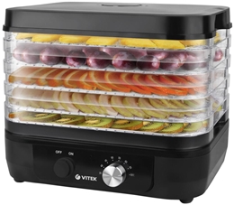 Сушка Vitek VT-5051 Мощность, Вт 250 Регулятор температуры да Кол-во поддонов 5 Материал корпуса пластик Сушка фруктов да Сушка овощей да Цвет чёрный Доп. особенности механическое управление
