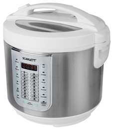 Мультиварка Scarlett SC-MC410S29 Объем чаши, л 5 Материал чаши алюминий Антипригарное покрытие PTFE Тип управления электронное Дисплей да Отсрочка запуска, ч 24 Количество программ 30 Мощность, Вт 900 Контейнер-пароварка да Мерная чаша да Ложка да Автоотключение да Индикация режима работы да Клапан выпуска пара да Режимы работы 27+2 Приготовление на пару да Рис/Гречка да Каша да Cуп да Тушение да Выпечка да Разогрев да Жарка да Cпагетти да Цвет белый/серый Размеры (ШхВхГ), мм 265x280x265 Доп. особенности программа - мой рецеп
