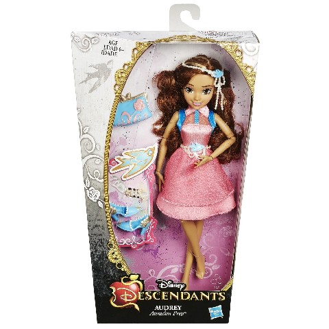 DD AURADON DESCENDANTS SIGNATURE AST HASBRO Hasbro Кукла "Наследники Дисней - Одри" Одри, девушка Бена, - одна из самых красивых девочек Соединенного Королевства Аурадона. Она верит в добро, любовь и красоту — тому, чему научила ее принцесса Аврора. Наряд куклы максимально точно повторяет образ экранной героини, ведь Одри, как и ее мама, является поклонницей розового цвета. У куклы короткое платьице формы «колокол», расклешенное книзу. Верх наряда хорошо подчеркивает изящную талию куколки и делает платье по-настоящему ярким, ведь он сочетает разные по фактуре и цвету ткани: сетку, розовый атлас и голубые оборки. На ножках Одри - голубые туфельки, мыски которых задекорированы блестящими элементами, а кайма напоминает нежное кружево. Шарнирные руки и ноги помогут кукле принять любую позу, что позволит проигрывать сюжетные сценки необычной истории Disney. Высота куклы: 30 см Комплект: кукла Одри, аксессуары. Рекомендуемый возраст: 6 лет +