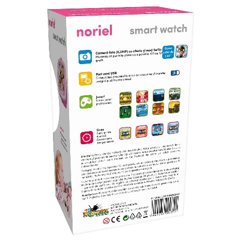 NORIEL SMART WATCH ROZ NORIEL Noriel Итерактивные часы "Smart watch - розовые" Крутой многофункциональный гаджет, который сопровождает вас, куда бы вы ни отправились, и хранит все ваши воспоминания! Часы, которые стимулируют детей играть на свежем воздухе. 8 мини-игр: - Лови карточку (Whac-A-Mole) - Симон (игра для развития памяти) - Подводная война (Sub Warfare) - Лягушка (Frogger) - Волшебная шляпа (Magic Hat) - Черепаштй мост (Turtle Bridge) - Кудкудах (Egg Catch) - Ниндзя (Ninja) Память, которая может хранить до 100 фотографий. Мини-порт USB. Подключите устройство к любому компьютеру для передачи изображений и загрузки часов. Рекомендуемый возраст: 3 года +