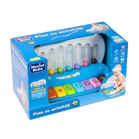 Noriel Bebe-Pian cu activitati NORIEL Noriel Bebe "Волшебное пианино с шариками" (рум-анг) Музыкальное пианино от Noriel c "волшебными шариками" - это маленькая симфония звуков, света и цвета! Шаг за шагом, дети познают элементы языка, формы, цвета, цифры, алфавит и другие знания об окружающем их мире. Пианино имеет два языка румынский и английскй, а также издает забавные звуки. Функции и особенности: - кнопка вкл / выкл и установки языков: румынского и английского - каждой клавише соответствует цилиндрик с "волшебными" шариками и световым эффектом - 8 кнопок с разными музыкальными нотами, цветами и животными - 4 функции: фортепиано, песни, числа (цвет/животные) Игрушка функционирует от 3 батареек типа AA de 1.5V (не включены). Рекомендуемый возраст: 18 месяцев +