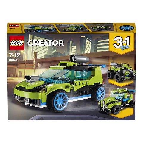 Rocket Rally Car LEGO LEGO Creator "Cуперскоростной раллийный автомобиль" Набор "Скоростной раллийный автомобиль" будто создан для любителей острых ощущений. Собери автомобиль, подними задний люк, проверь воздухозаборник и залезай в кабину. Прогревай хорошо мотор, жми на педаль и разгоняй скорость. Вдоволь накатавшись, переделай из автомобиля квадроцикл и отправляйся за победой на гоночную трассу, оставляя участников позади. А с помощью грузовика ты пройдешь и по болотной местности, не боясь загрузнуть колесом. Но будь осторожен, скорость - это всегда риск. Количество деталей: 241 Рекомендуемый возраст: 7 - 12 лет