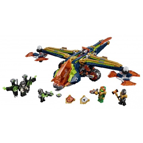 Aaron's X-bow LEGO LEGO Nexo Knights "Аэро-арбалет Аарона" Нападай на Ван-байтер и Кибер-байтера на аэро-арбалете Аарона! Прицелься и выпусти ракеты, но опасайся злобных существ-криттеров. Лети низко, чтобы доставить рыцарский внедорожник Робина к месту сражения и отправить его в погоню за Кибер-байтером. Ни в небе, ни на земле нет никого, кто мог бы победить рыцарей Lego Nexo Knigts! В набор входят три щита для сканирования: Nexo-Силы "Весёлая тыква" и "Гусиный шаг" и Сила Мерлока "Молот Мерлока". Количество деталей: 569 Рекомендуемый возраст: 8 - 14 лет