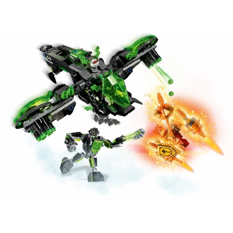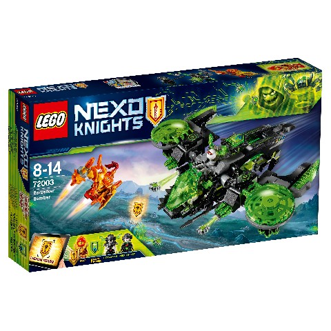 Berserker Bomber LEGO LEGO Nexo Knights "Неистовый бомбардировщик" Берегись злобного летающего глаза! Слишком поздно... Неистовый бомбардировщик успел заметить Мэйси и включил на своём Вайро-костюме режим автоматической стрельбы криттерами. Надевай реактивный ранец Мэйси и взмывай ввысь, чтобы нанести решающий удар с воздуха силами рыцарей Lego Nexo Knights с воздуха. Бери могучую булаву, чтобы остановить воздушную атаку бомбардировщика, и спаси королевство Найтон от опасного вируса. В набор входит два щита для сканирования: Nexo-Сила "Удар с небес" и Сила Мерлока "Булава Мерлока". Количество деталей: 369 Рекомендуемый возраст: 8 - 14 лет