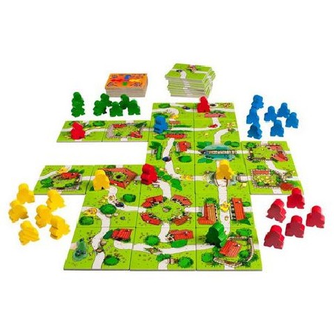 Carcassonne Junior CUTIA Настольная игра "Каркассон Junior" (рум) Carcassonne Junior - это упрощенная версия известной базовой игры Carcassonne и подходит для детей в возрасте от четырех лет. Вы получаете восемь деревянных фигурок, так называемых деток Каркассон. Вы кладете плитки ландшафта вместе. Если дорога завершена, вы можете поместить одну из своих частей на эту дорогу, если ваш цвет включен. Если вы первыми перенесли все свои фигуры на пейзаж, вы выиграли! Подходит для 2-4 игроков. Рекомендуемый возраст: от 4-x лет
