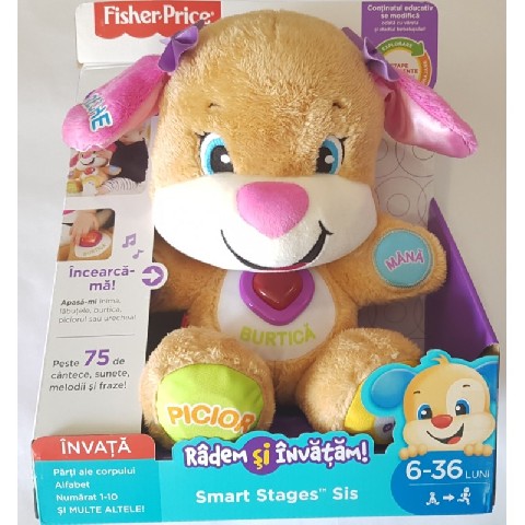 Mattel FP Surioara Inteligenta seria "Smart Stages" rom Mattel Fisher Price Сестричка Умного Щенка Все малыши развиваются в разном темпе,и технология Smart Stages позваляет выбирать уровень обучения. Детские песенки, фразы и звуки на трех уровнях игры:1.Изучаем;2.Побуждаем;3.Притворяемся. Уровень обучения изменяется по мере взросления малыша.нажымая на переключатель. Возраст: 6-36 месяцев.